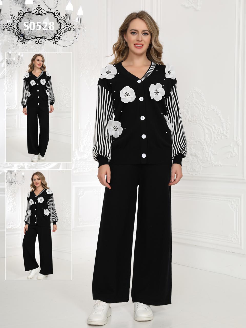 An elegant two-piece set (jacket and pants) designed with luxurious contrast in timeless black and white. The jacket features a...