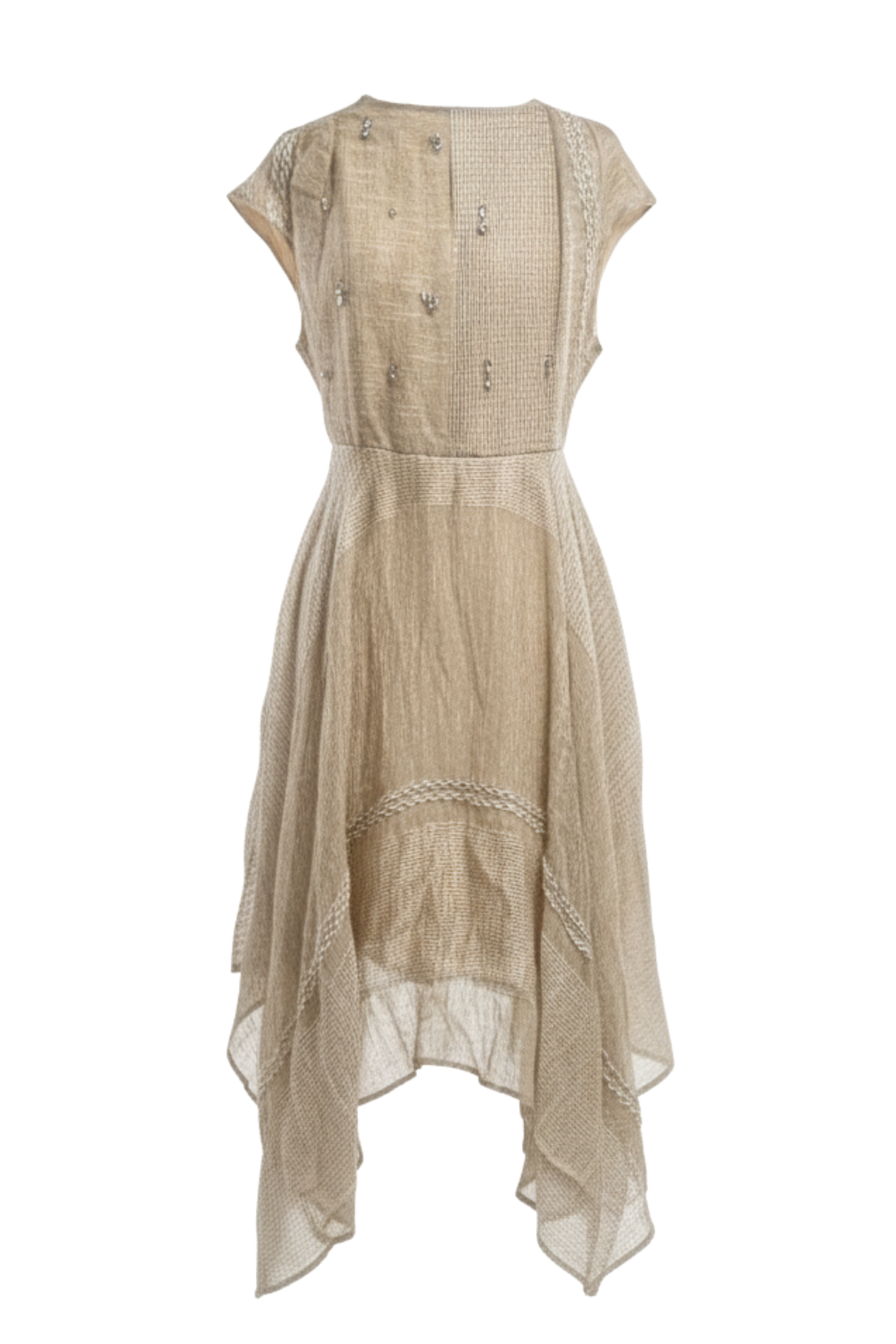 أضيفي لمسة من الرقي والأناقة إلى إطلالتك مع هذا الفستان الميدي المصمم بخامة كتان صيفية. يتميز الفستان بقصة محددة للخصر مع حزام طويل يعزز من شكل القوام، بينما يزدان الجزء العلوي بفصوص وسترِس فضي ليمنحك إطلالة متألقة تناسب السهرات أو الإطلالات المميزة في النهار.