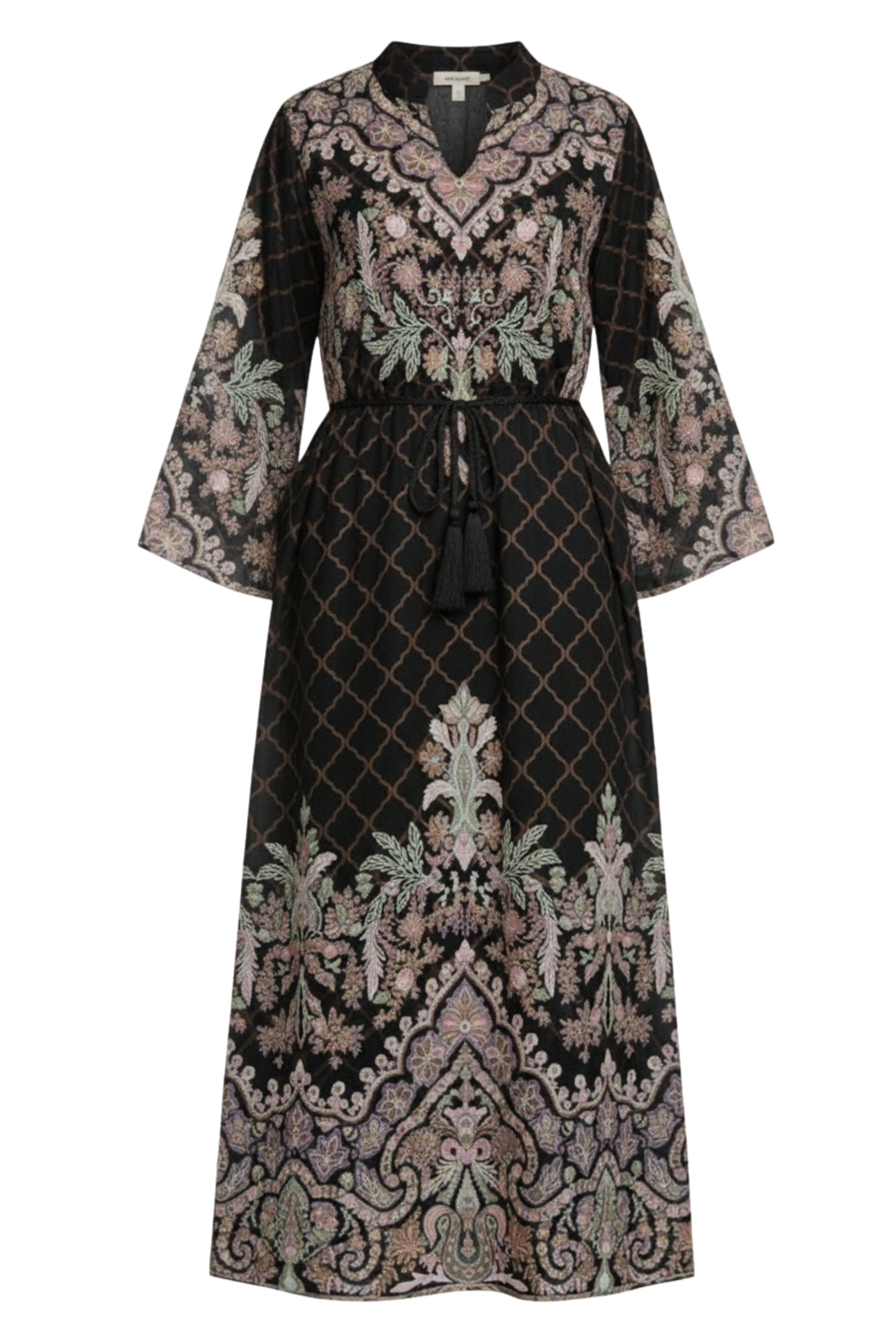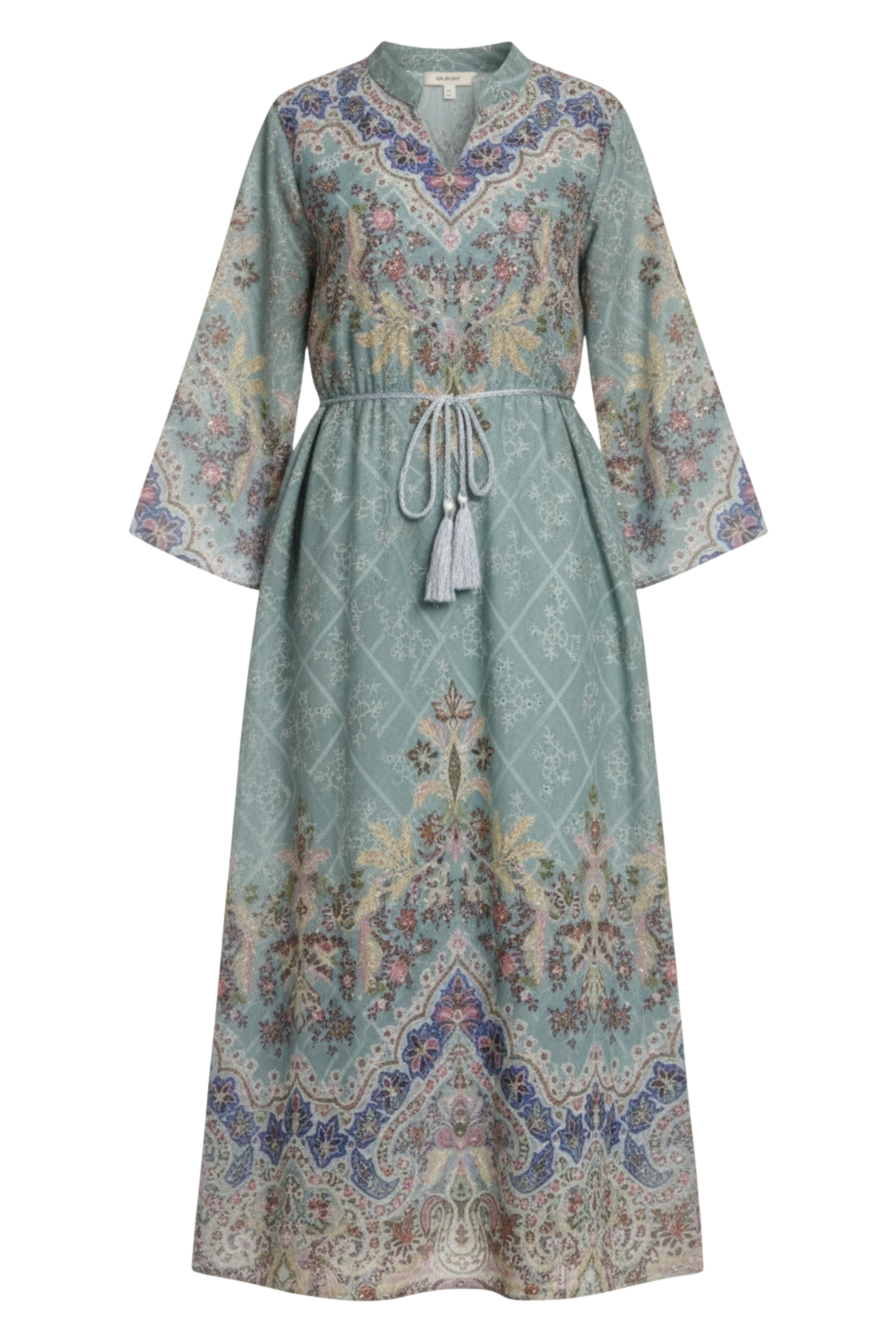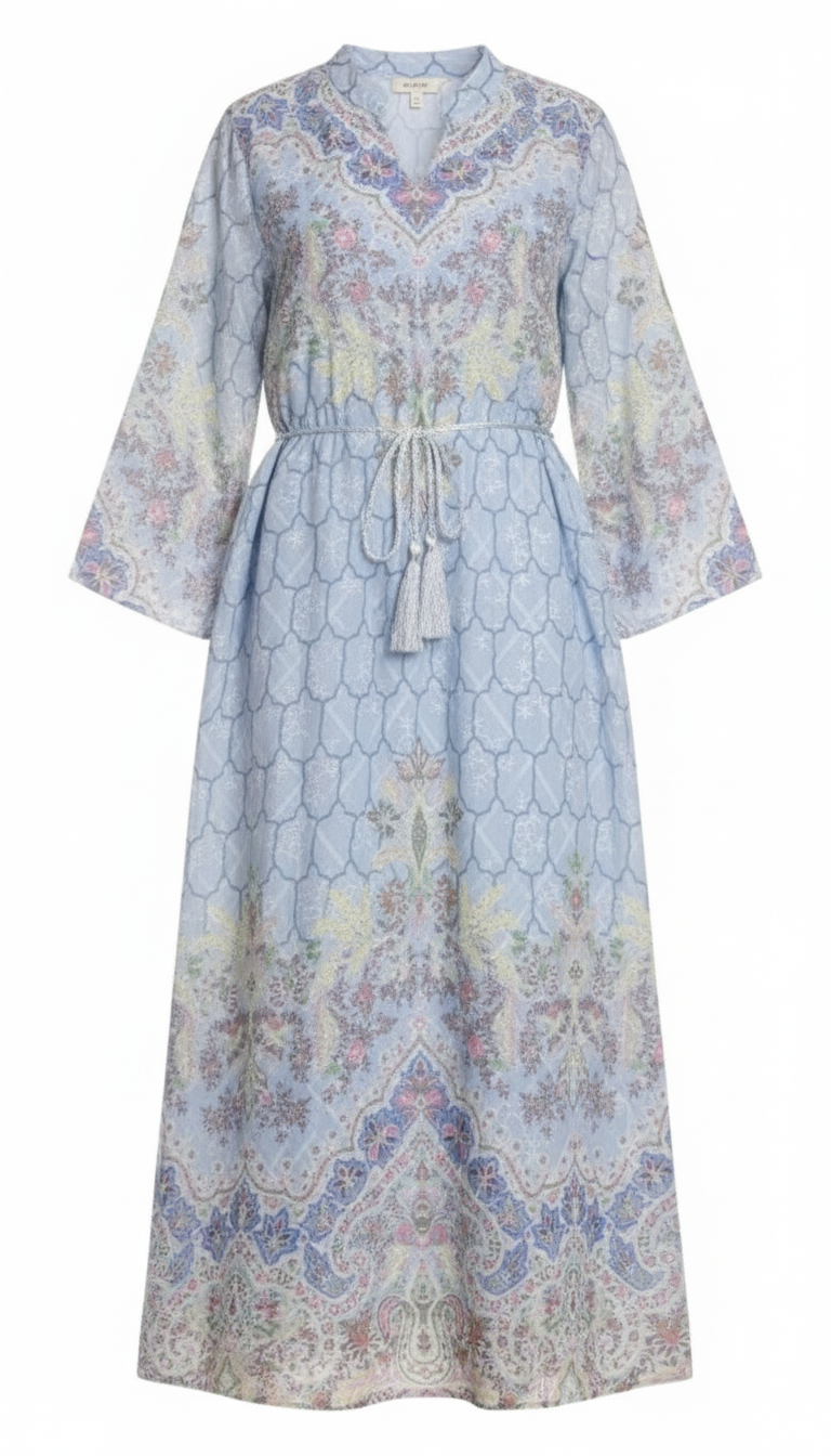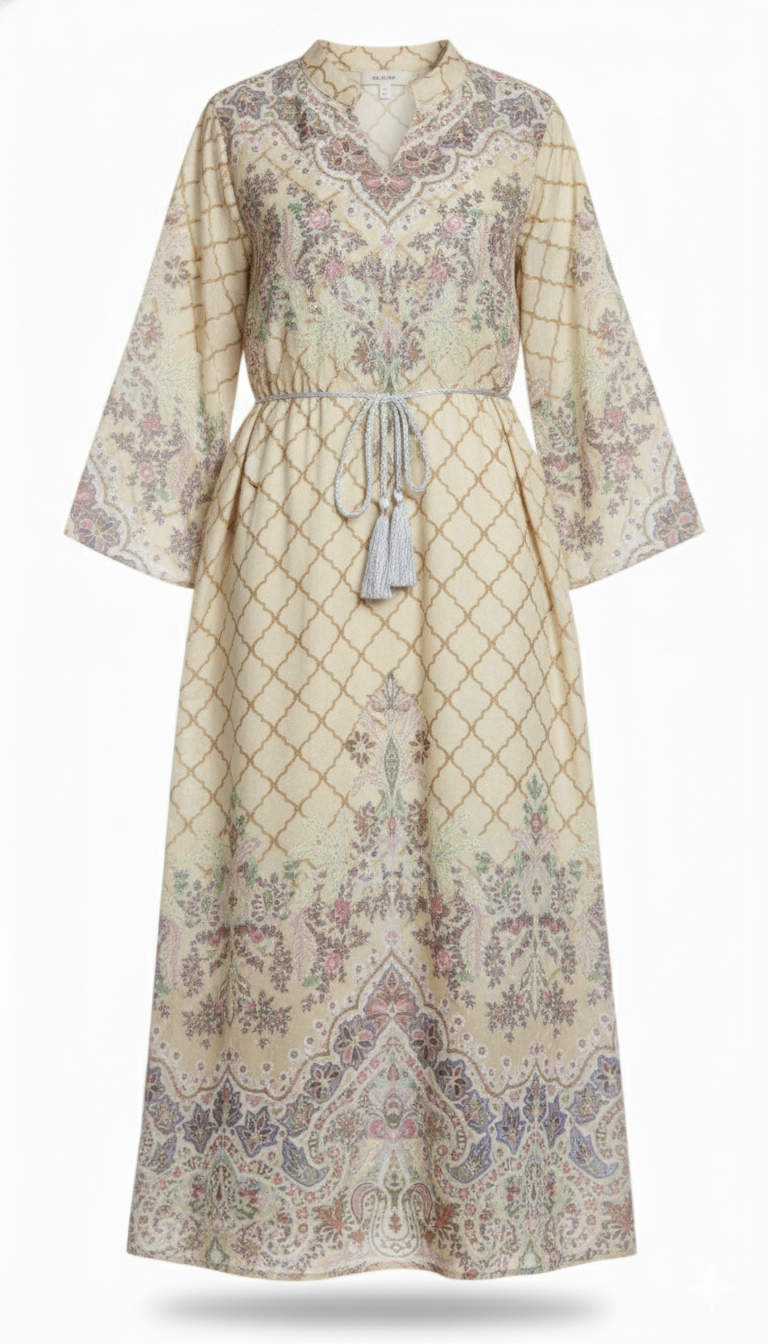 أضيفي لمسة من الأناقة والراحة مع هذه الجلابية النسائية المصنوعة من قماش الشيفون الخفيف. تتميز بتصميم برقبة على شكل V وأكمام طويلة لمظهر محتشم وراقي، مزينة بزركشات أنيقة في الجزء العلوي والسفلي مع زخارف مختلفة لباقي التصميم لإطلالة مفعمة بالأنوثة. تأتي مع حزام خصر منفصل على شكل ضفيرة ليمنحك خيار إبراز القوام أو اعتماد إطلالة فضفاضة ومريحة، مما يجعلها مثالية للخروجات اليومية والمناسبات البسيطة.
